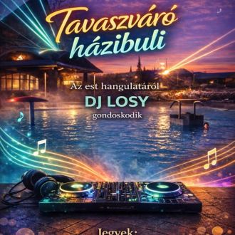 2026. március 14-én (szombat) 19:00 órától Tavaszváró házibulival kedveskedünk vendégeinknek! Belépő: elővételben a helyszínen: 3.200,- Ft/fő, a rendezvény napján 3.400,- Ft/fő. A fergeteges hangulatról ezúttal DJ LOSY gondoskodik. Kellemes kikapcsolódást kívánunk!